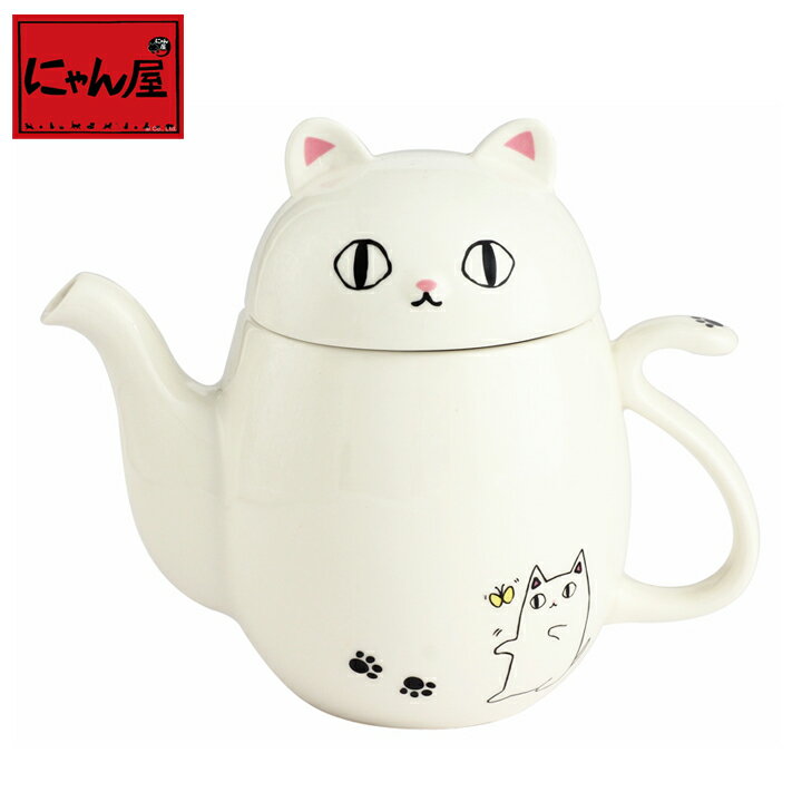 【結婚祝い プレゼント ギフト】 にゃん屋 猫3兄弟 猫型ポット shiro | ポット 急須 土瓶 紅茶 コーヒー まったり 人気 おすすめ 食器 業務用 飲食店 カフェ うつわ 器 おしゃれ かわいい 引き出物 誕生日 贈り物 贈答品 セラミック藍