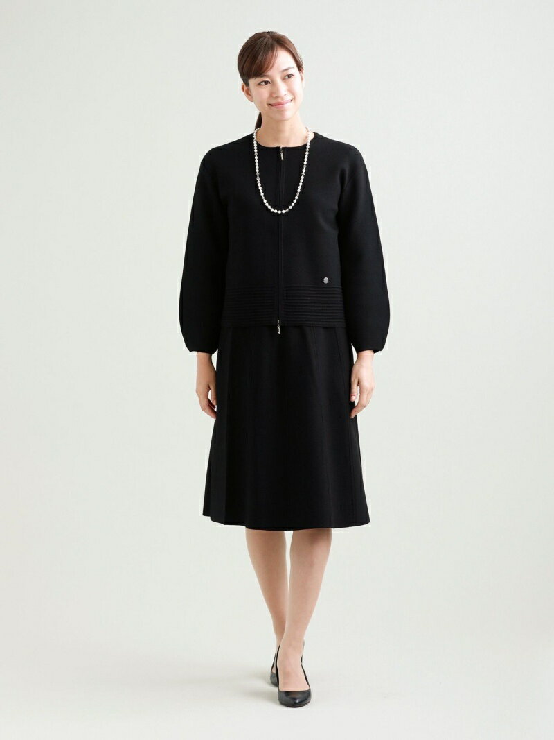 Aラインシルエットで、縦に入ったタックが、細長シルエットを演出します。