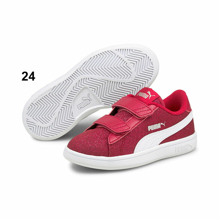 スニーカー キッズシューズ 女の子 ジュニア 17-21cm 子供靴/プーマ PUMA スマッシュ V2 グリッツグラムV PS/ガールズ コートスタイル 靴 ラメ キラキラ 女児 スポーツ カジュアル くつ/367378