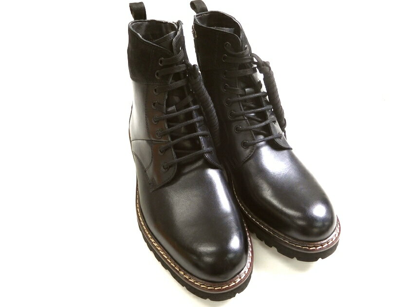 MODELLO モデロ Madras マドラス 本革 スエード切替 8ホール サイドジップ レザー ブーツ 革靴 DM5813 ブラック 25▲032▼10315k36