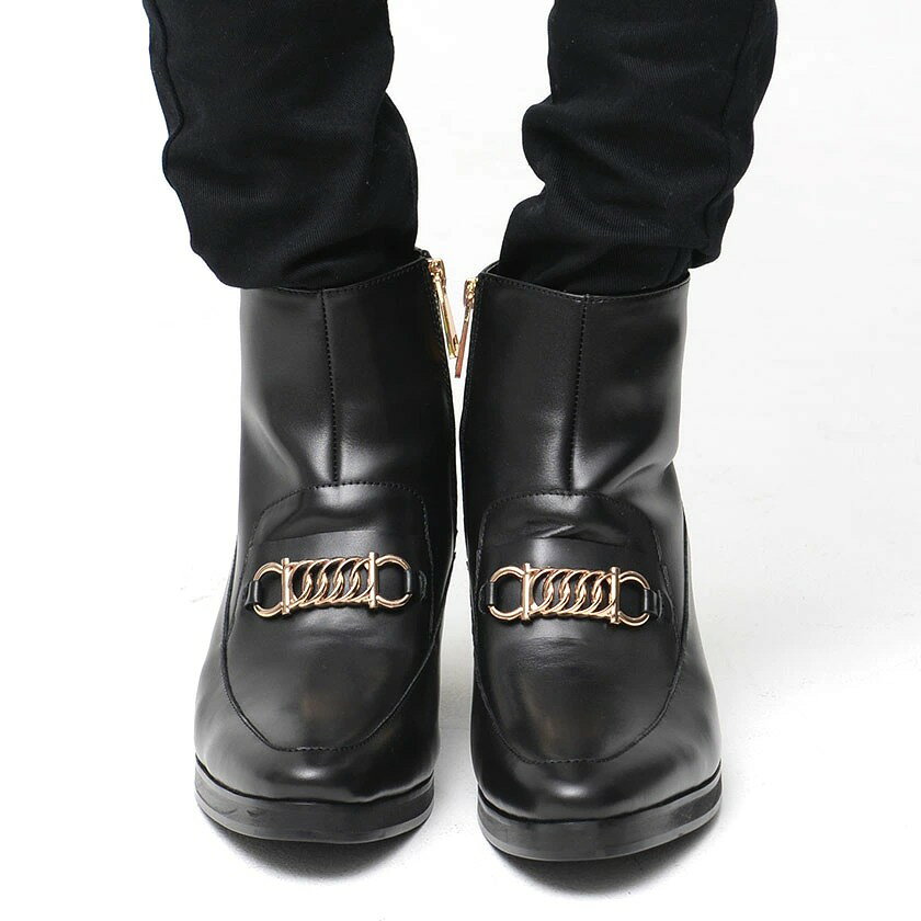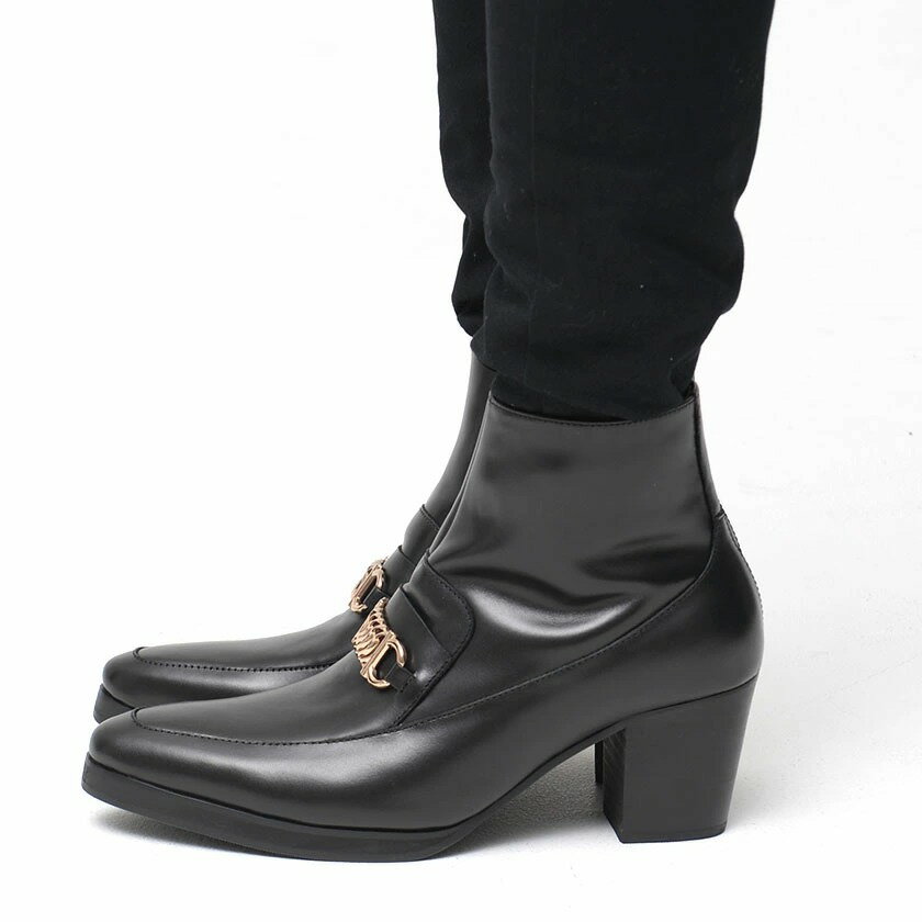 本革 ブーツ メンズ "CV Select【シーブイセレクト】チェーンビット付きサイドジップヒールブーツ/全1色"【あす楽対応】ドレスブーツ ヒールブーツ ショートブーツ ジョッパーブーツ 本皮 革靴 皮靴 チェーン ビット サイドジップ 厚底 秋 冬 2020